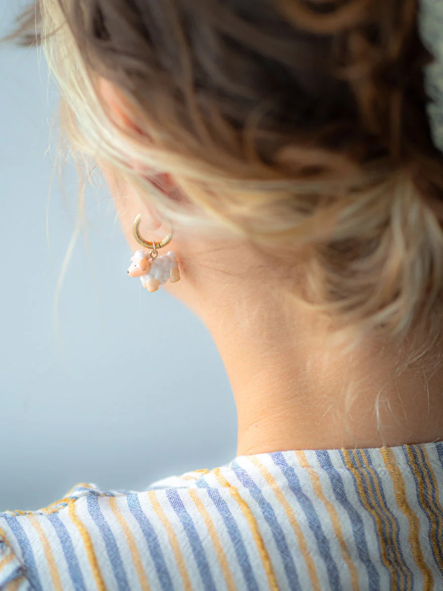 They hang from delicate huggie hoops made of stainless steel or gold-plated stainless steel and are lightweight and comfortable to wear.